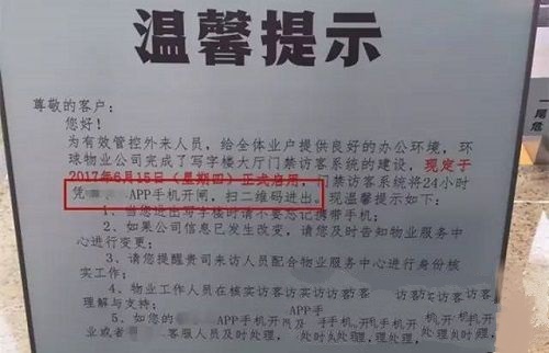 近日在成都便發生了一起“移動門禁擾人事件”:某區部署移動門禁,開啟APP進出時代。簡單地說便是要求住戶在進門前必須下載安裝APP,通過軟件掃碼進入,如以下告示所示: