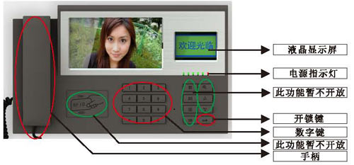 在聯網設備接通的狀態下,在門口機上輸入“0000”,則主機可以呼叫管理中心;管理中心有圖像,提手柄即可通話。
